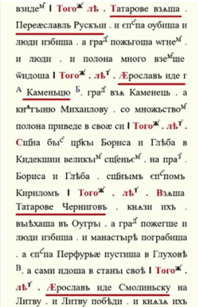 Здесь говорится, что в то время как татары взяли Переславль руський, то есть, одно это название говорит о том где находилась русь, так вот, одновременно с татарами Ярослав Всеволодович развернул боевые действия и напал на Каменец, все это происходило в одну компанию, после чего татары пошли на Чернигов, а Ярослав Всеволодович взял для них Смоленск и именно поэтому татарам не надо было брать Смоленск