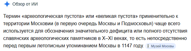 Итак, мы выяснили, что московитская Википедия нам сбрехала. Сбрехала она в том, что на эти земли переселялись славяне. Сбрехала, указав точную дату этого переселения, а именно 5-7 век нашей эры, московитская историография противоречит своей же московитской археологии.
